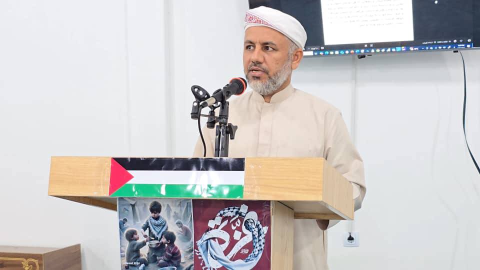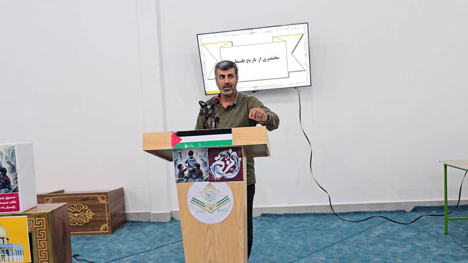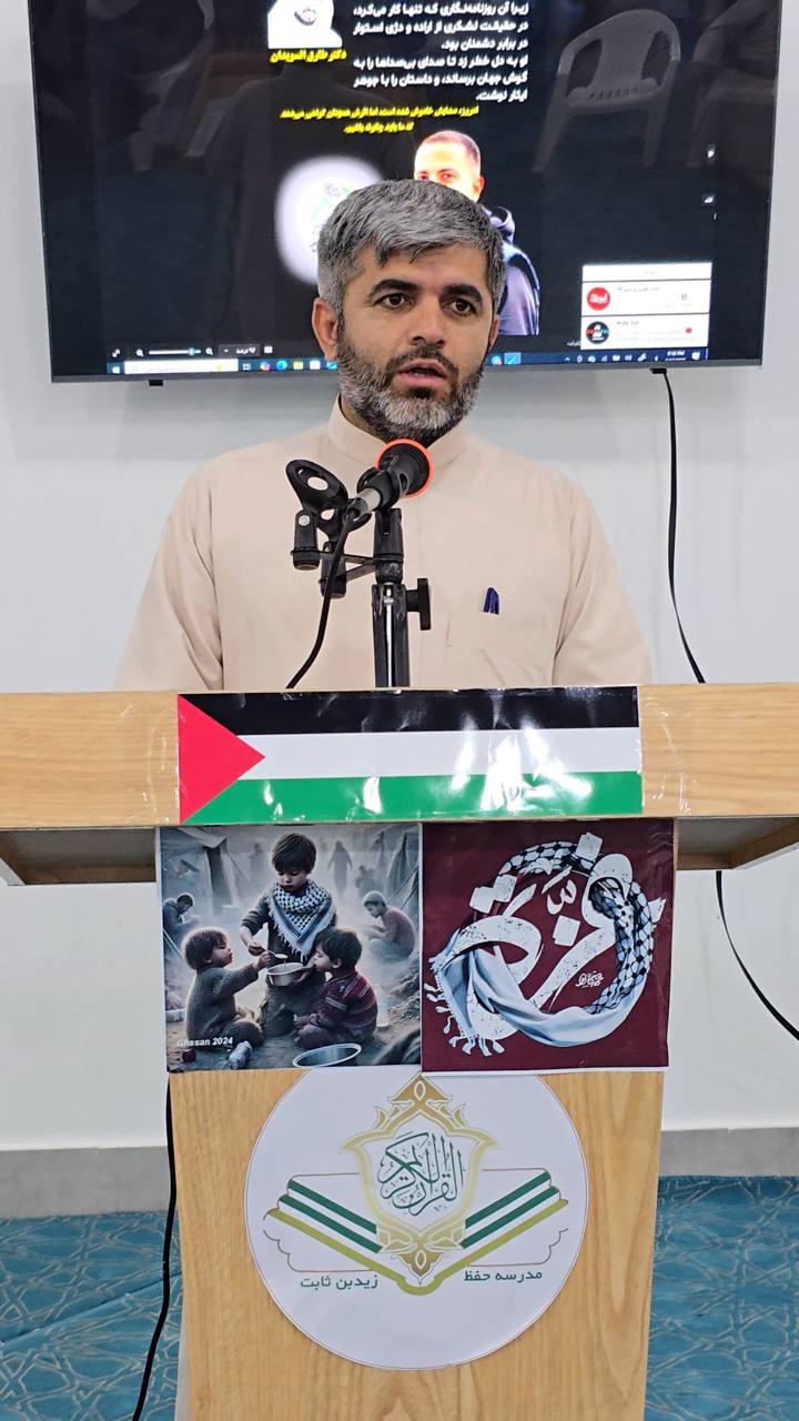 در ادامه، کلیپهایی از مظلومیت مردم غزه پخش شد و طلاب دلنوشتههایی به زبانهای فارسی و عربی قرائت کردند. همچنین، شیخ عبدالله شریفی در قالب پاورپوینتی، به مرور تاریخ فلسطین، امپراتوری عثمانی، اعلامیه بالفور ۱۹۱۷ و روند اشغال سرزمین فلسطین توسط رژیم صهیونیستی پرداخت. پس از آن، شیخ مجید قاسمی توصیههای تربیتی و قرآنی به طلاب ارائه داد.
