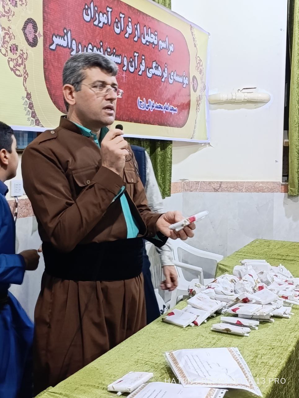 در ادامه، جلیل بهرامینیا مسئول هیأت اجرایی روانسر با تأکید بر لزوم انطباق رفتار مبلغان با ارزشهای وحیانی، خاطرنشان کرد که حاملان قرآن باید با حفظ پاکی درون و پرهیز از رذایلی چون طمع و تعصب، بازتابدهندهی عدالت در جامعه باشند. این مراسم که با اجرای دفنوازی و سرودخوانی نوجوانان همراه بود، با اهدای جوایز به بیش از ۱۵۰ قرآنآموز به پایان رسید.