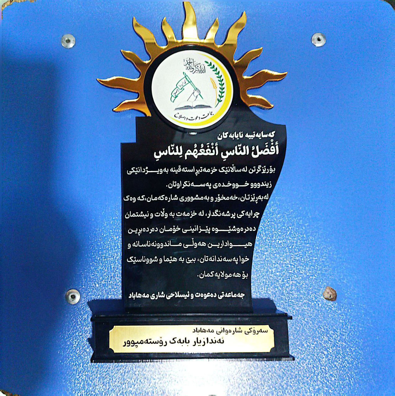 لازم به ذکر است تندیس جماعت دعوت و اصلاح به پاس قدردانی از فعالیتهای شهردار به وی اهدا گردید.