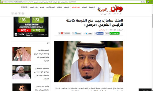 بر اساس خبری که از سوی بیشتر منابع مطبوعاتی عرب و در رأس آنها وطن (watan.com) منتشر شده است، شاه سلمان، پیش از کودتای نظامی در مصر، از محمد مرسی- رییس جمهور قانونی- حمایت میکرده است.