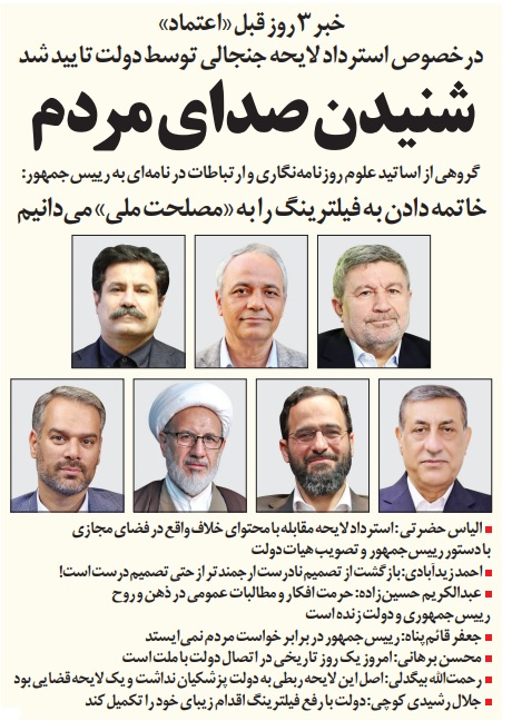 3 روز پیش 6 مرداد ماه 1404، روزنامه اعتماد برای نخستینبار از احتمال بازپسگیری لایحه مقابله با انتشار محتوای خلاف واقع در فضای مجازی خبر داد. برخی افراد و گروهها از جمله روزنامه کیهان در زمان انتشار این گزارش، نسبت به این رویکرد واکنش نشان داده و آن را غیرممکن ارزیابی کردند. اما گذشت زمان نشان داد که با حضور دولتی که صدای افکار عمومی و نخبگان را شنیده و برای آن ارزش قائل است هر اقدام ناممکنی محتمل خواهد شد.