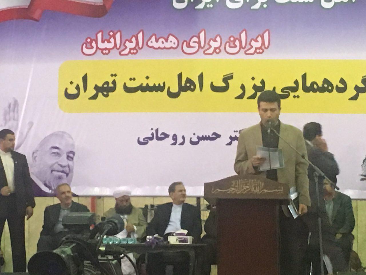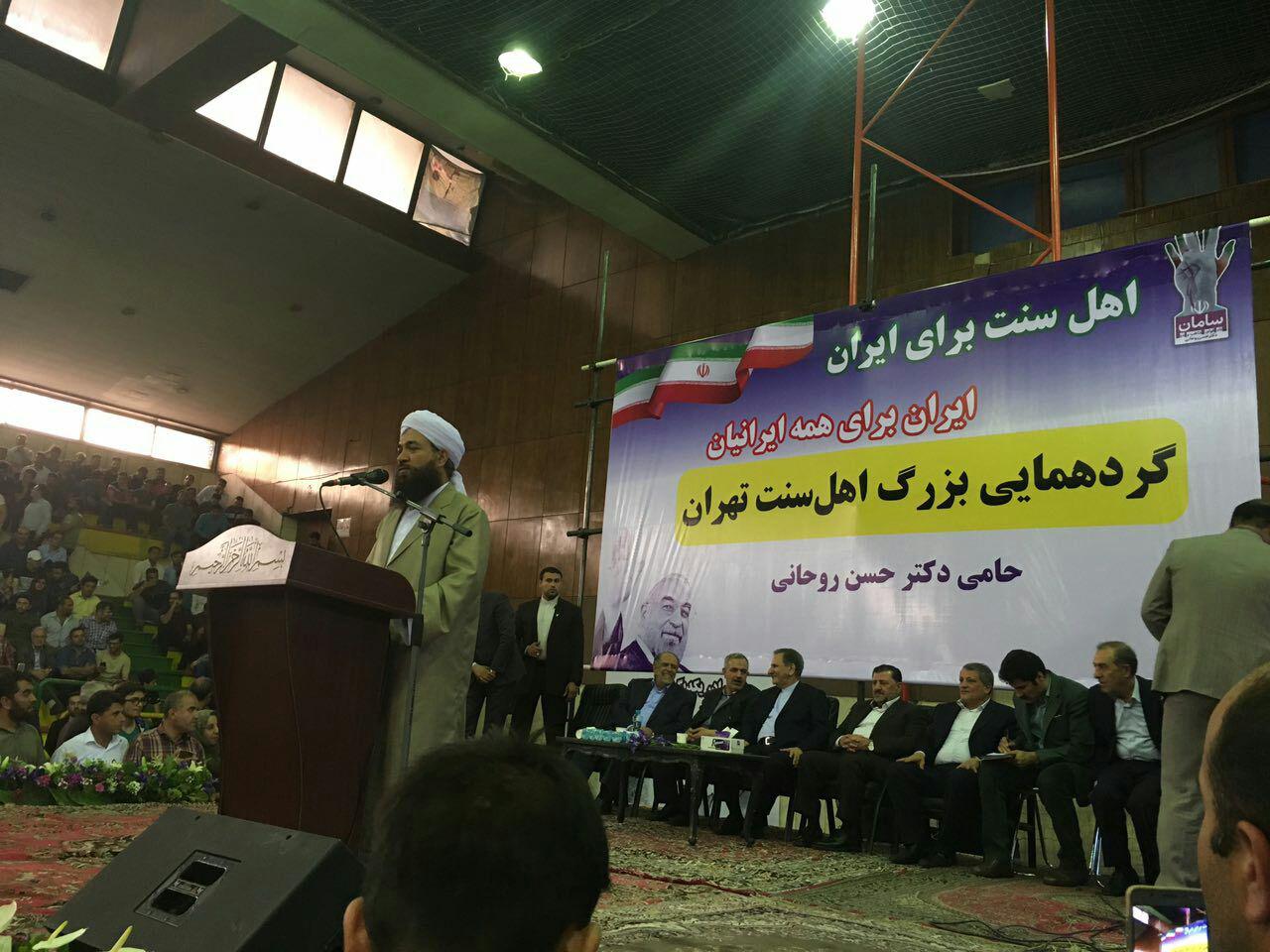گردهمایی بزرگ اهلسنّت تهران، به منظور حمایت از دکتر حسن روحانی با حضور جمعی از علما و بزرگان اهلسنّت و چهرههای برجستهی اصلاحطلب، عصر امروز سهشنبه ٢٤ اردیبهشتماه در سالن حجاب این شهر برگزار شد.