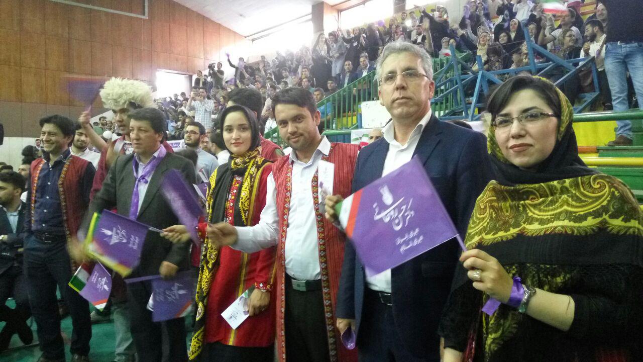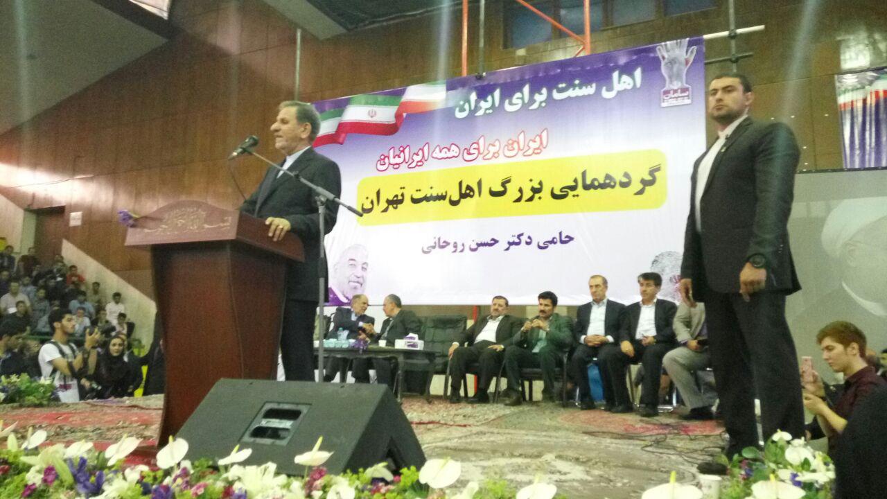 در این مراسم اسحاق جهانگیری، معاون اول رییسجمهوری در حمایت از دکتر روحانی گفت: با برجام راه تعامل ایران با کشورهای دیگر را هموار کردیم. وی تأکید کرد که باید زبانهای مختلف در مناطق مختلف تدریس شود و اقوام ایرانی افتخار ایرانی و مناطق امن ایرانی هستند. هیچ قوم ایرانی بر دیگری برتری ندارد.