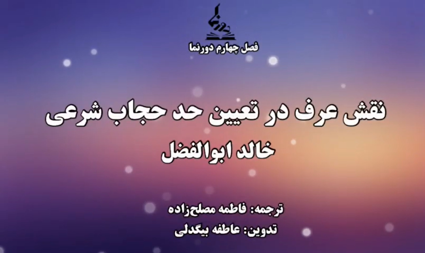 این ویدئو گزیدهای از درسگفتار خالد ابوالفضل، نویسنده و محقق کویتیـامریکایی و استاد حقوق دانشگاه یوسیاِلاِی، با عنوان «حیا در اسلام: حجاب، خِمار و رسانههای اجتماعی» است که در ژوئیه ۲۰۲۲ منتشر شده است.