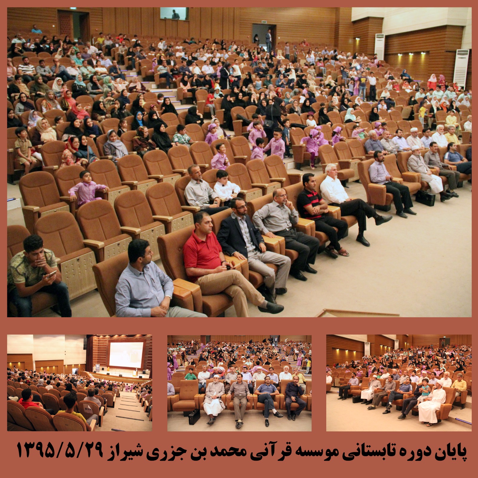 مراسم پایان دورهی تابستانی مؤسسهی قرآنی محمد بن جزری شیراز با حضور مسؤولان، علماء، معتمدین، قرآنآموزان، اولیاء و مربیان در روز جمعه ٢٩ مردادماه برگزار شد.