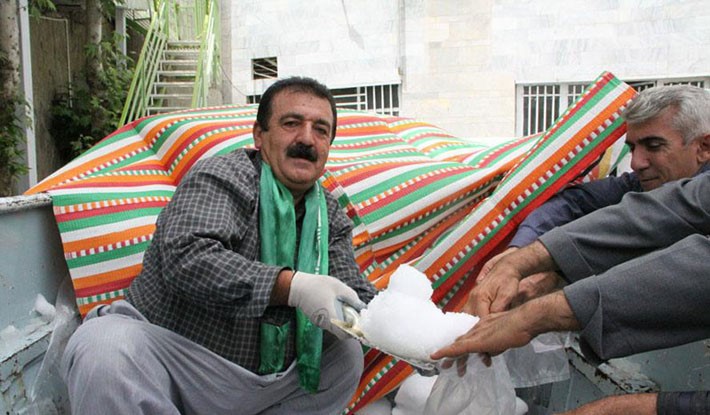 شهروند خیّر پاوهای اقدام به توزیع برف ارتفاعات کوههای شاهو و گردنه تته در بین مردم پاوه در روزهای جمعه کرد.
