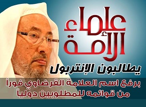 علما و اندیشمندان امت اسلامی در محکومیت قرار دادن نام دکتر یوسف قرضاوی در لیست افراد تحت پیگرد اینترپل بیانیهای صادر کردند.