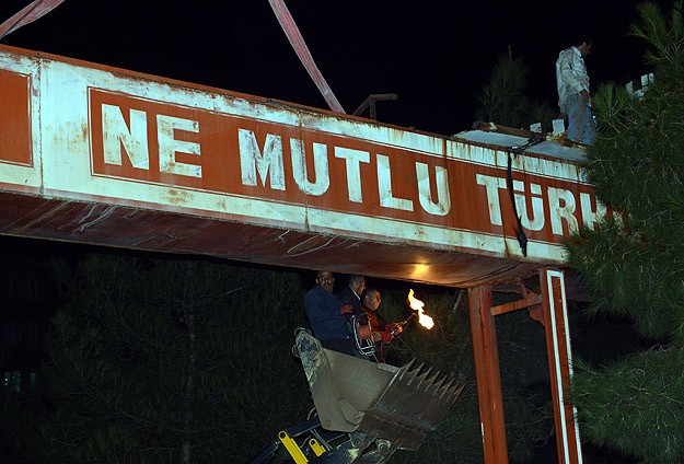 تابلوی «سعادتمند است آنکه تُرک است» (Ne mutlu Türküm diyene) در شهر دیار بکر ترکیه برداشته شد.