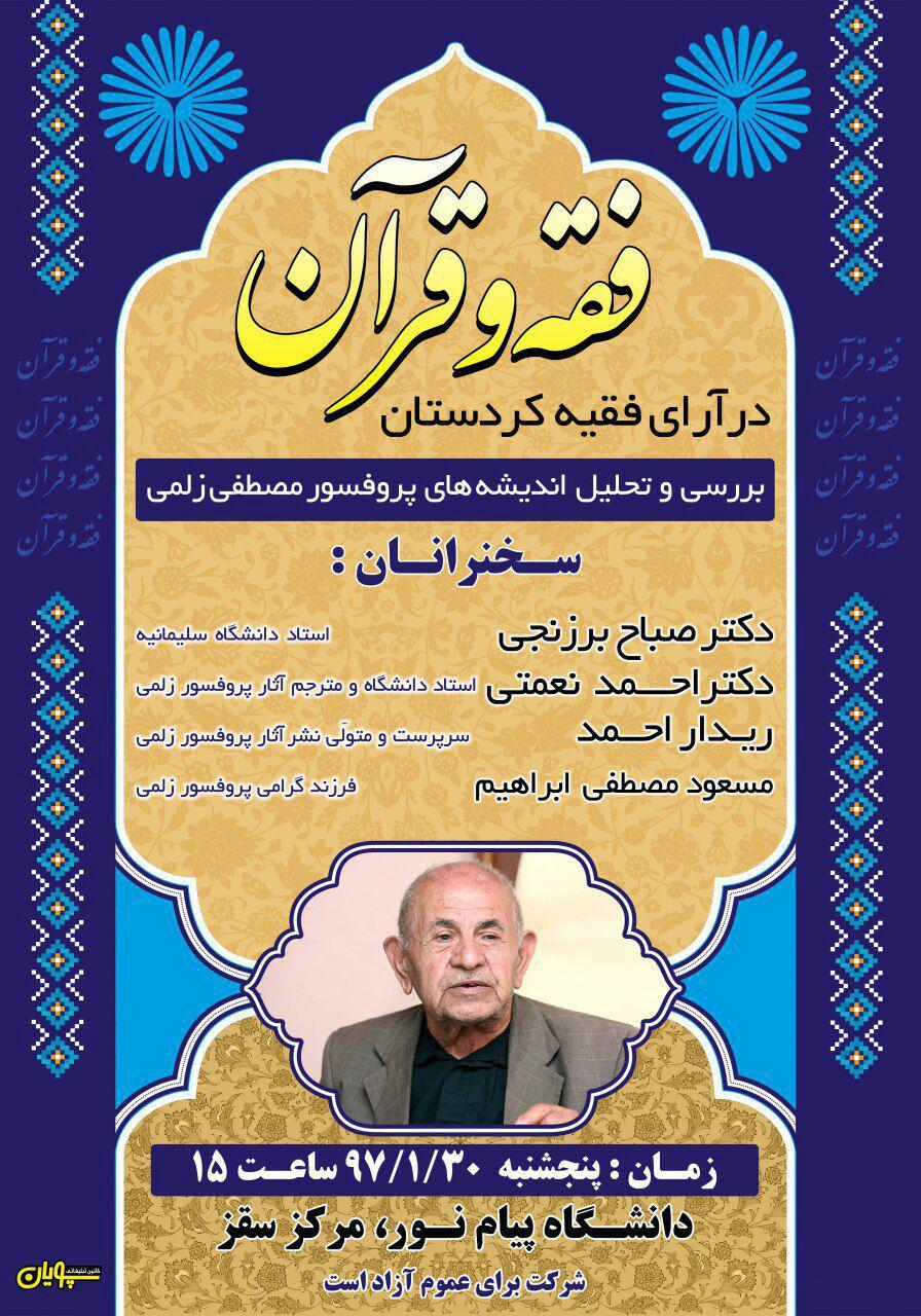 همایش «فقه و قرآن در آرای فقیه کردستان، بررسی و تحلیل اندیشههای پروفسور مصطفی زلمی» عصر امروز پنجشبه، در دانشگاه پیام نور سقّز برگزار شد.