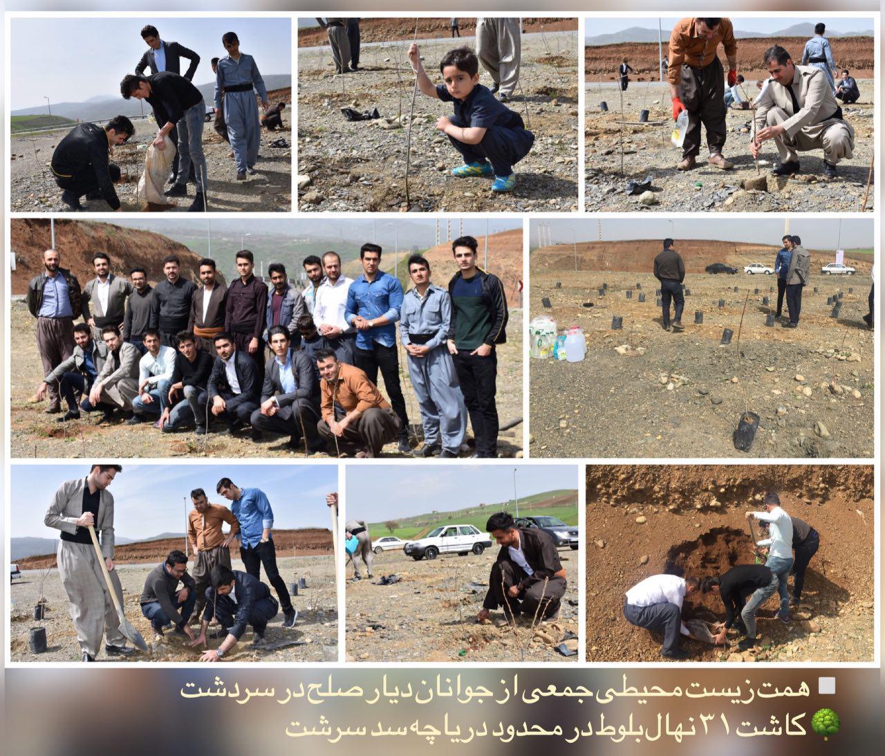 جمعی از جوانان سردشتی اقدام به كاشت ٣١ نهال بلوط در محدوده درياچه سد سرشت در اولين ساعات سال ٩٧ کردند.