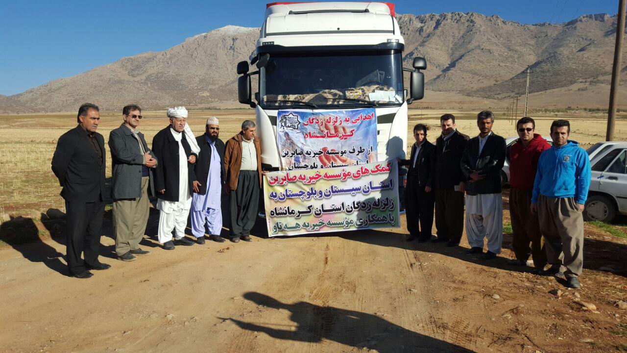 کمکهای مردمی که توسط مؤسّسه خیریه صابرین از شهرهای زاهدان، سراوان، ایرانشهر و فنوج جمع جمعآوری شده بود به دست زلزلهزدگان غرب کشور رسید.