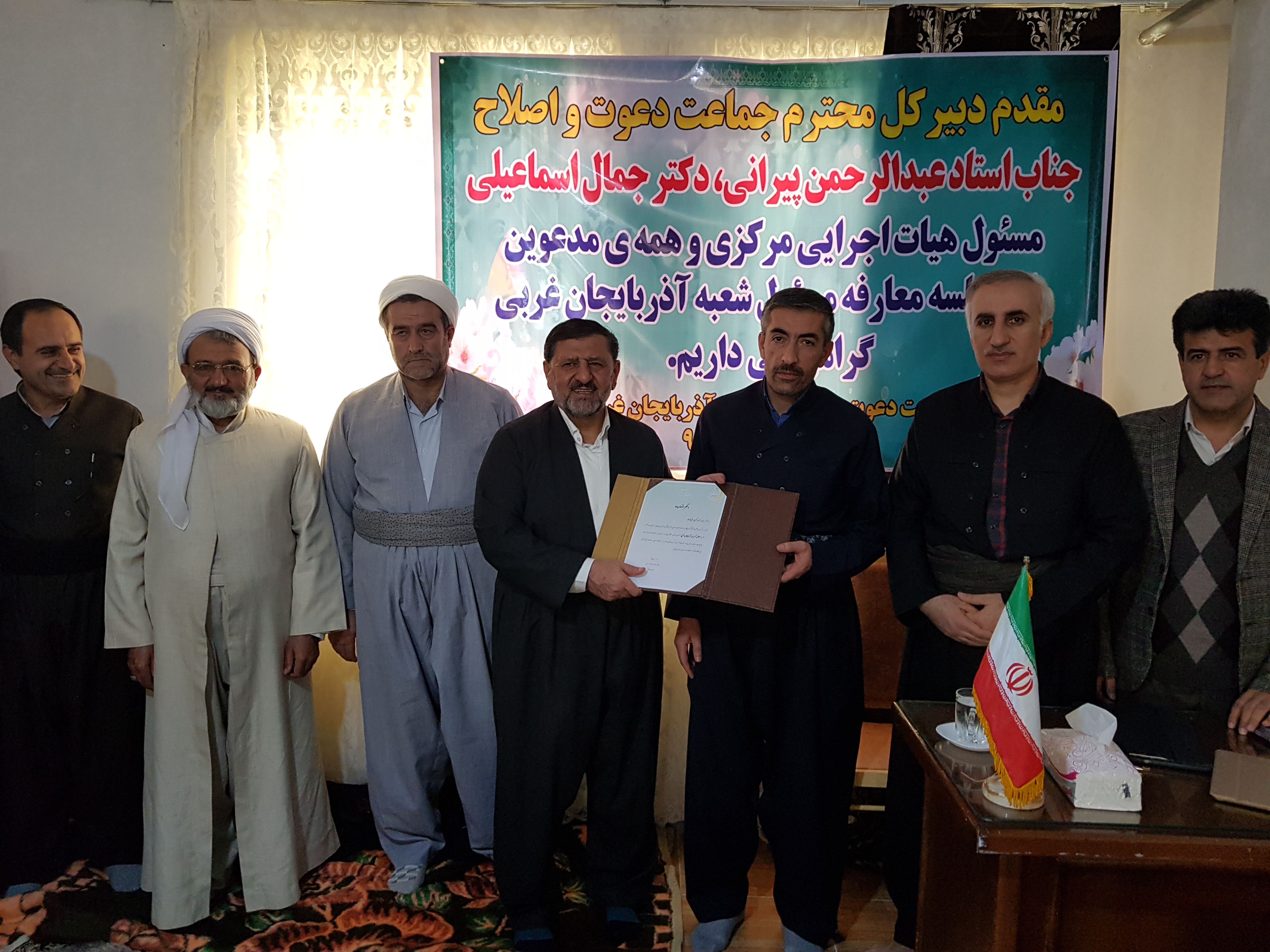 با حضور دبیرکلّ جماعت دعوت و اصلاح و مسؤول هیأت اجرایی مرکزی مراسم تکریم مسؤول هیأت اجرایی شعبهی آذربایجان غربی دیروز پنجشنبه ۲۶دیماه جاری برگزار و عبدالکریم عزیززاده در سمت پیشین خود ابقا شد.