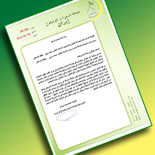 در پی پیروزی چشمگیر حزب آزادی و عدالت، بازوی سیاسی جنبش اخوان المسلمین مصر، استاد عبدالرحمن پیرانی، دبیرکل جماعت در نامهای خطاب به رهبران حزب و جنبش این پیروزی را تبریک گفت.