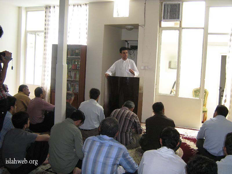 وی در ادامه با تفسیر آیه «إِنَّمَا یَعْمُرُ مَسَاجِدَ اللَّهِ مَنْ آمَنَ بِاللَّهِ وَالْیَوْمِ الْآخِرِ وَأَقَامَ الصَّلَاةَ وَآتَى الزَّکَاةَ وَلَمْ یَخْشَ إِلَّا اللَّهَ فَعَسَى أُولَئِکَ أَنْ یَکُونُوا مِنَ الْمُهْتَدِینَ» (توبه:۱۸) نحوه آباد کردن و ویژگیهای آبادکنندههای واقعی مساجد را توضیح داد وسپس با استناد به آیههای ۳۵و۳۶ سوره نور «اللَّهُ نُورُ السَّمَاوَاتِ وَالْأَرْضِ...» بیان کرد که هدایت مذکوردر آیه ۱۸سوره توبه همان نوری است که خداوند در سوره نور به آن اشاره کرده و وعده داده است که آنرا به بندگانی میدهد که در مسجد حضور پیدا میکنند و خود را به صفات مذکور در آیه ۳۶ سوره نور «رِجَالٌ لَا تُلْهِیهِمْ تِجَارَةٌ وَلَا بَیْعٌ عَنْ ذِکْرِ اللَّهِ وَإِقَامِ الصَّلَاةِ وَإِیتَاءِ الزَّکَاةِ یَخَافُونَ یَوْمًا تَتَقَلَّبُ فِیهِ الْقُلُوبُ وَالْأَبْصَارُ» میآرایند، وی در خاتمه بحث با تفسیر آیههای ۱۲و۲۸سوره حدید تأثیرات دنیوی و اخروی این نور و هدایت را شرح داد.