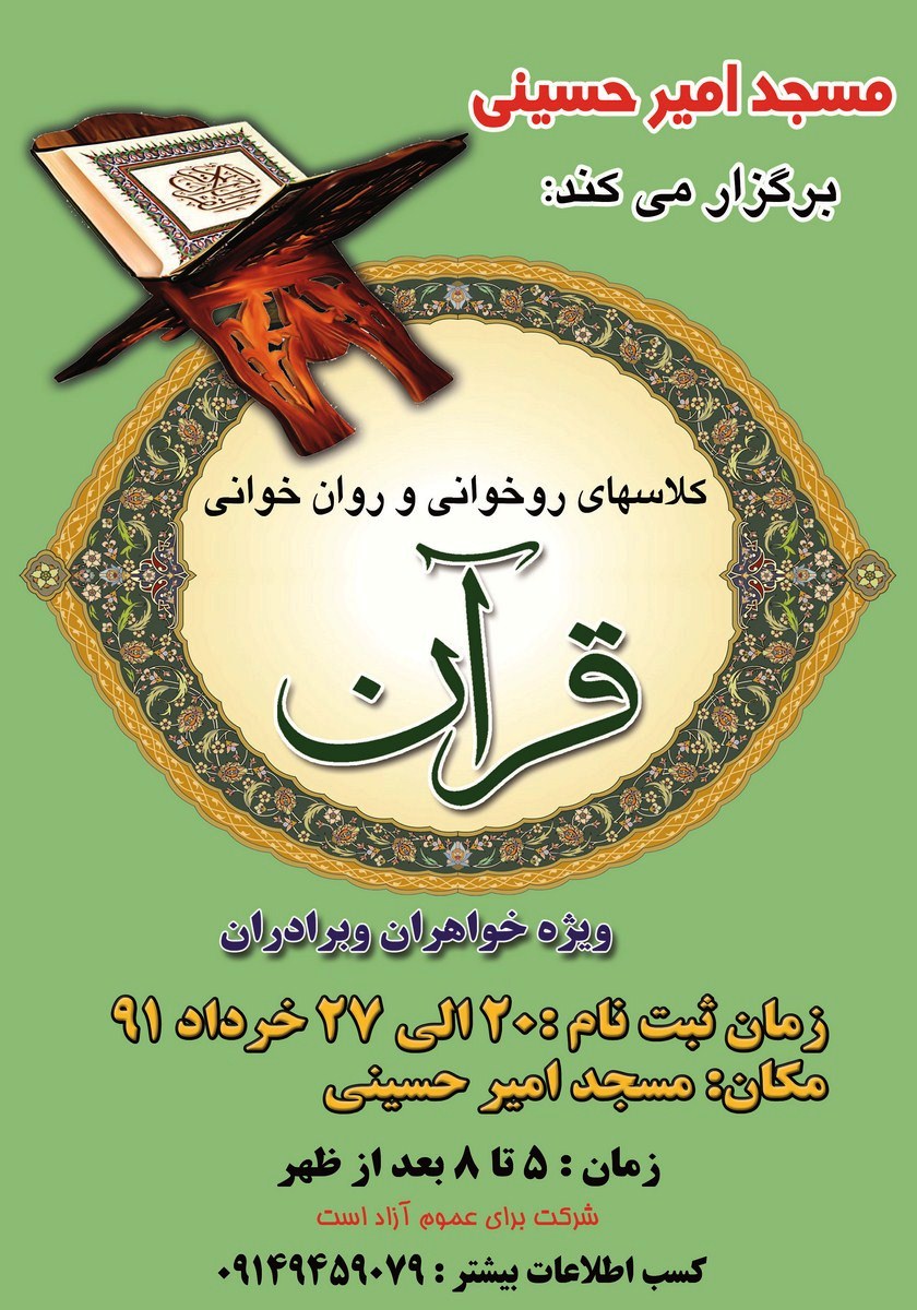 بنابه گزارش خبرنگار اصلاحوب از شهرستان نقده، مسجد امیرحسینی با همکاری تنی چند از خیّرین و جوانان این شهرستان، به مناسبت استقبال از ماه مبارک رمضان، اقدام به انتشار آگهی مبنی بر برگزاری مسابقهی حفظ قرآن در ماه نزول قرآن در سطح شهرستان نموده است.