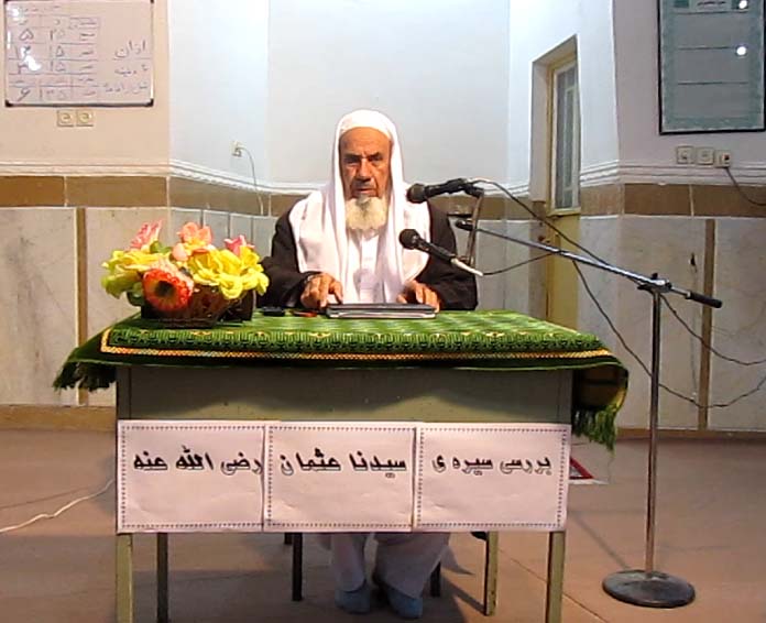 بر همین اساس بررسی سیرهی سیدنا عثمان -رضی الله عنه- انتخاب و توسط برادر حاج ملک محمد ملازهی از ۵ بهمن لغایت ۱۱بهمن ۹۲ طی یک هفته در مسجد رضوان این شهرستان، برای عموم مردم برگزار شد.