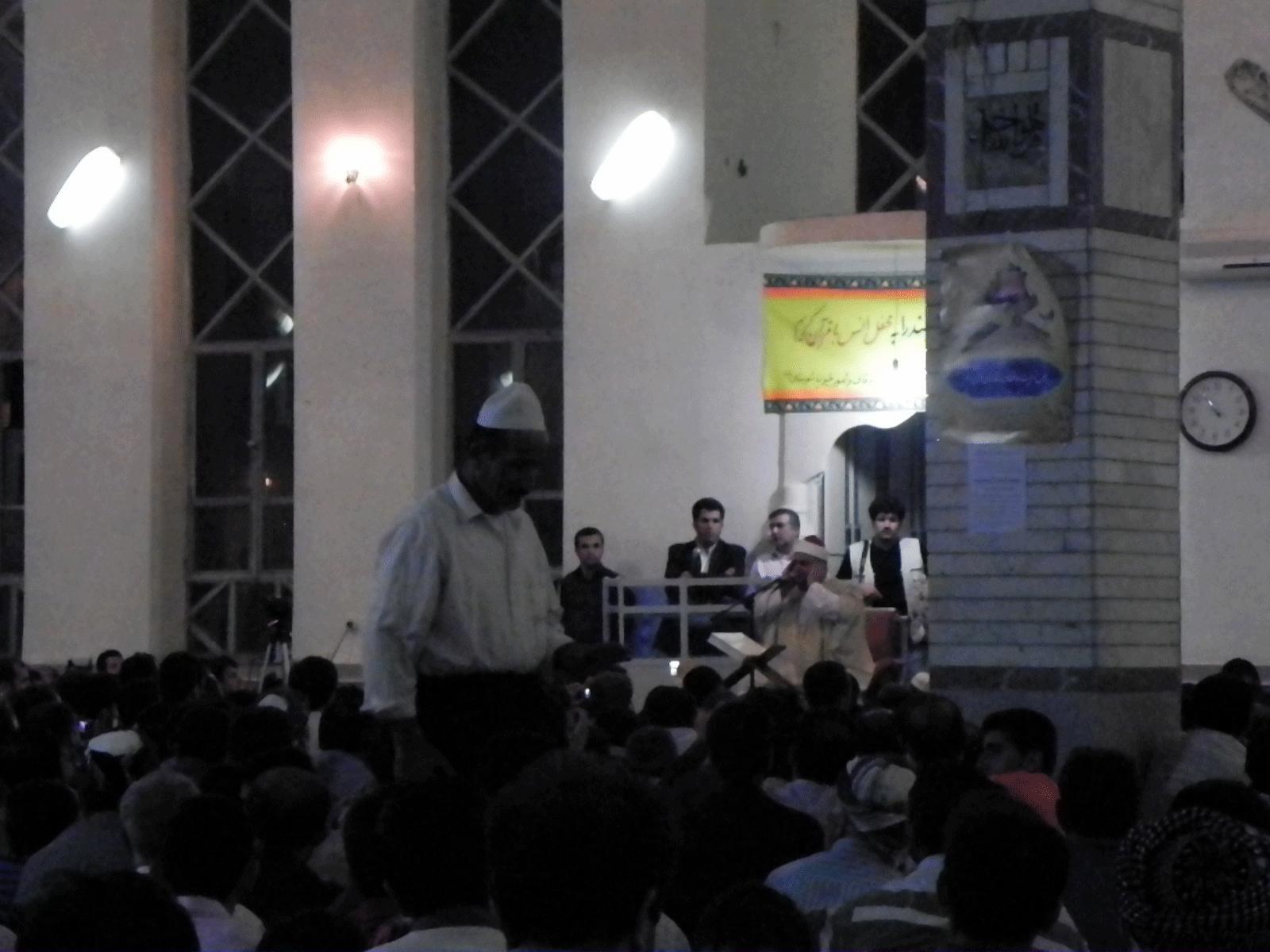 صديق محمود صديق المنشاوي فرزند استاد محمود صدیق المنشاوي و برادر استاد فقید محمدصدیق المنشاوي قاری برجستهی مصری به تلاوت آیاتی از سورهی مبارکهی الرّحمن و نازعات با صوتی زیبا و روحافزا با حضور خیل عاشقان قرآن در مسجد جامع بانه پرداخت.