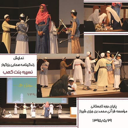 در این مراسم قرآنآموزان مؤسسه، برنامههای متنوع هنری را اجرا کردند که با استقبال حضار روبرو شد. همخوانی قرآن، اجرای سرود و تواشیح و دفزنی از برنامههای قرآنآموزان بود. همچنین قرآن آموزان در برنامهای قسمتهایی از زندگی صحابی بزرگوار نسیبه بنت کعب -رضی الله عنها- را در قالب نمایشنامه اجرا کردند.