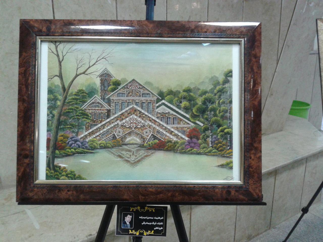 محسن احمدزاده در گفتوگویی در خصوص ترسیم آثار خود گفت که هر یک از آثار خود را در مدت یک ماه رسم نموده است. وی افزود که آثار وی الهام گرفته از سبکهای معماری اسلامی است و تصاویری از اماکن مذهبی واقعی و ذهنی را به نمایش در آورده است.
