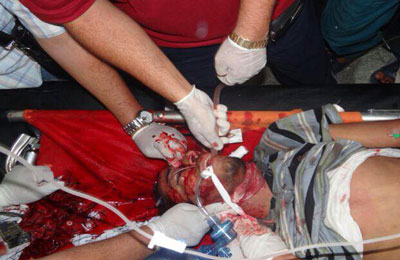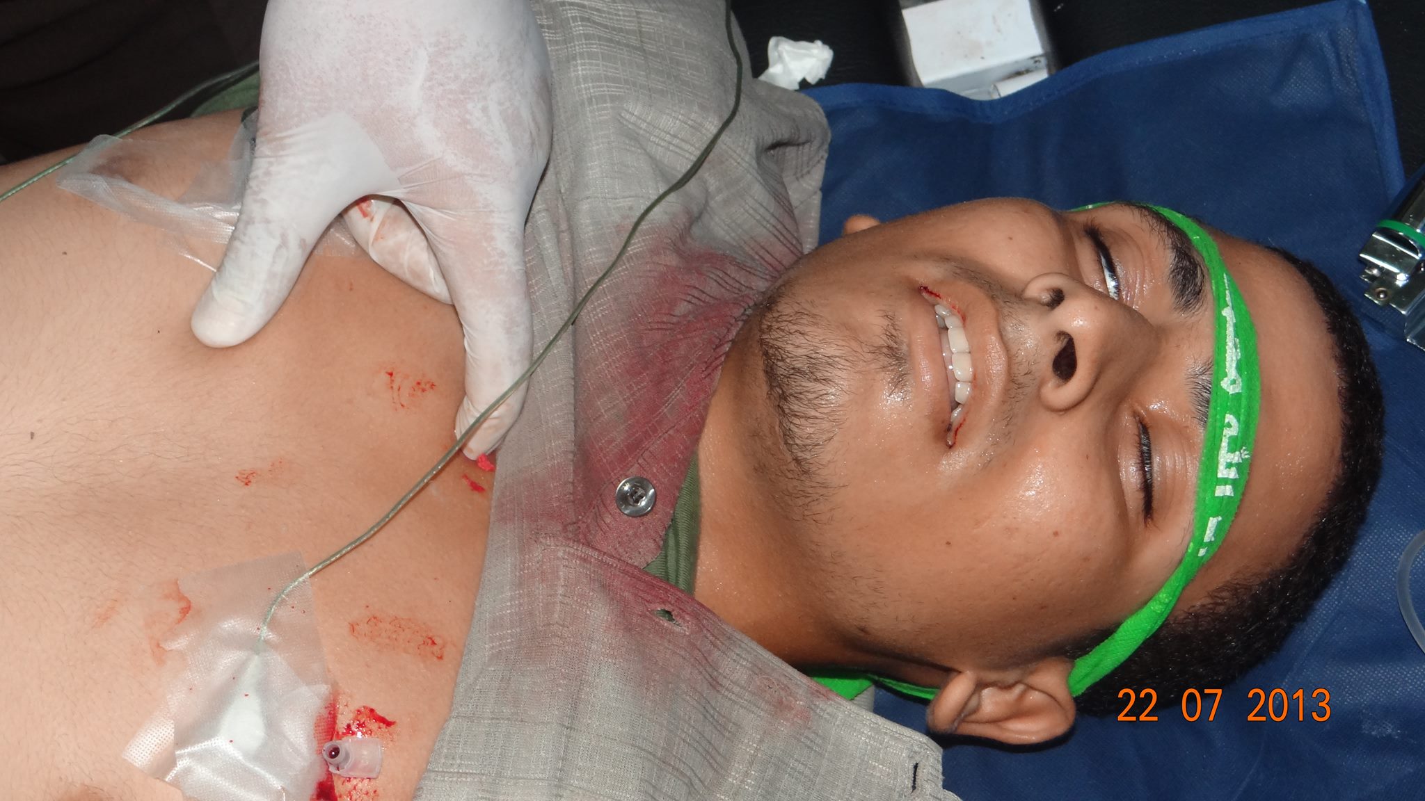 مدیر بیمارستان سیار تأکید کرد بیشتر مجروحان و شهدا از ناحیهی سر، گردن، قفسهی سینه و از پشت مورد اصابت قرار گرفتهاند. وی گفت: وضعیت بسیاری از مجروحان وخیم است، وی از پزشکان متخصص جراحی و... خواست که به یاری خیل مجروحان در بیمارستان سیار در میدان رابعه بشتابند. این درحالی است که برق میدان، اینترنت و نیز راههای منتهی به میدان از سوی نیروهای امنیتی بسته شده و از رساندن انواع دارو به میدان جلوگیری میشود.