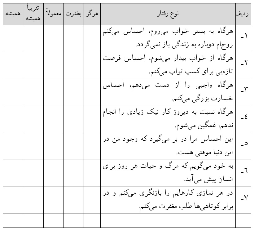 2- اقدام به بازنگری اعمال و كرداری كه در این مدّت انجام گرفتهاست. میتوان از جدول ذیل برای این كار كمك گرفت.