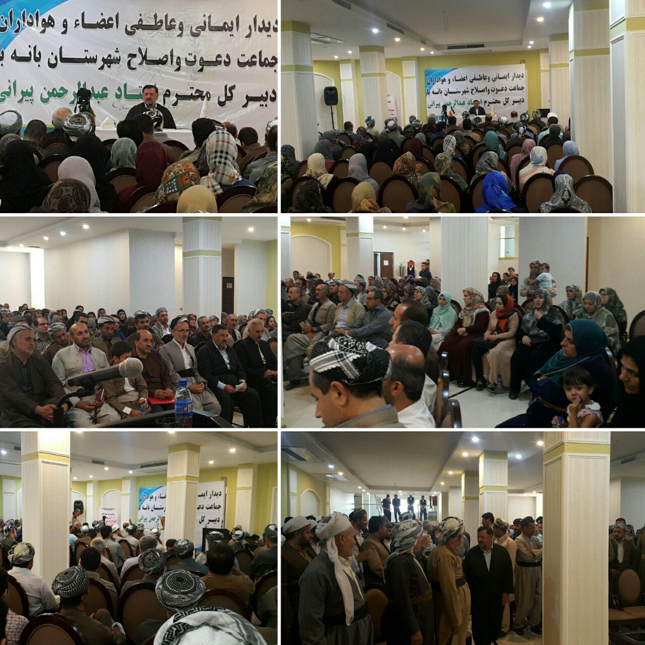 استاد عبدالرحمن پیرانی دبیرکل جماعت دعوت و اصلاح روز چهارشنبه ٢٧ تیرماه در هتل داوینکوی بانه با اعضا و هواداران در این شهرستان دیدار و بر ضرورت حفظ جایگاه اقتصادی منطقه و نقش آن در فقرزدایی تأکید کرد.