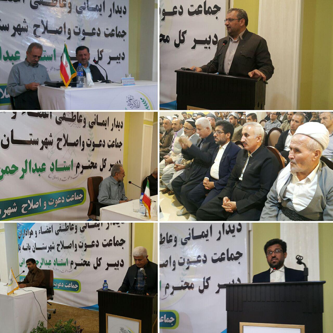 بنا به گزارش اصلاح‌وب استاد عبدالرحمن پیرانی دبیرکل جماعت دعوت و اصلاح ضمن ابراز خوشحالی از حضور در شهرستان بانه، از وجود زمینه‌های رشد و شکوفایی اقتصادی در این شهر ابراز خرسندی نمود و توصیه کرد که موقعیت و جایگاه کنونی، با حکمت و درایت حفظ شود؛ چرا که مردم ما سال‌ها از طعم تلخ فقر را چشیده‌ و از نابسامانی اقتصادی و بیکاری نالیدەاند.