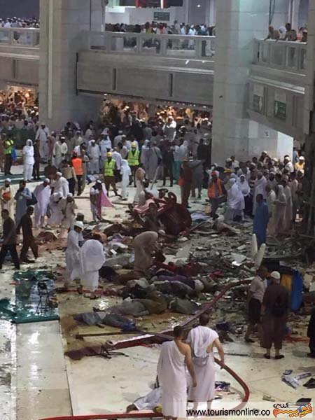 عصر دیروز جمعه ۲۰ شهریورماه یک جرثقیل بزرگ بر اثر شدت باد و طوفان در مکه مکرمه به داخل مسجد الحرام در نزدیکی مقام ابراهیم سقوط کرد که منجر به کشته و زخمی شدن دهها تن از حجاج حاضر در محل شد.