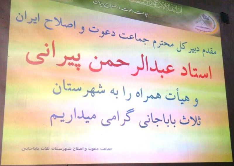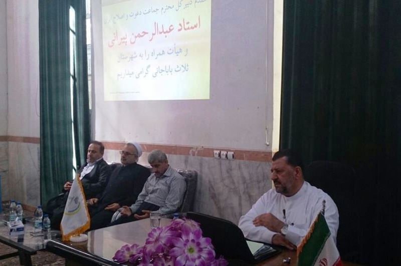 به گزارش روابط عمومی جماعت دعوت و اصلاح شهرستان ثلاث باباجانی، در این نشست، استاد عبدالرحمن پیرانی، «دبیرکل جماعت دعوت و اصلاح ایران» در ابتدای سخنانش ضمن اشاره به پاره‌ای از علل طولانی شدن دیدار خود با اعضاء، اینگونه دیدار‌ها را که صرفاً به خاطر رضای خداوند صورت می‌پذیرند، نوعی عبادت و تقویت کننده‌ی ایمان برشمرد و خداوند را بر این نعمت اخوت و برادری سپاس گفت.