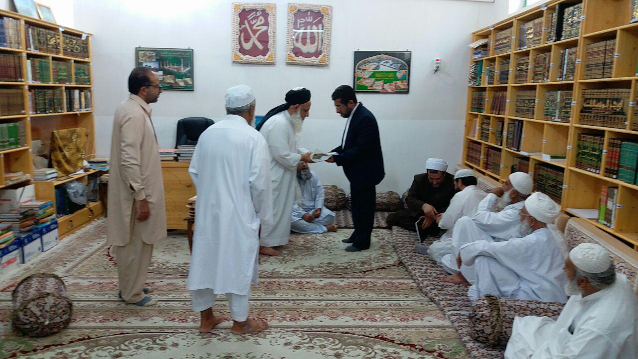 لازم به ذکر است که مهمانان در بدو ورود توسط مولوی عبدالواحد بزرگزاده، خطیب جمعه و مدرّس حوزه، مورد استقبال قرار گرفتند و وی در خصوص «جامعة الحرمین» مکاتب و مدارس فرعی آن، توضیحاتی ارائه داد.