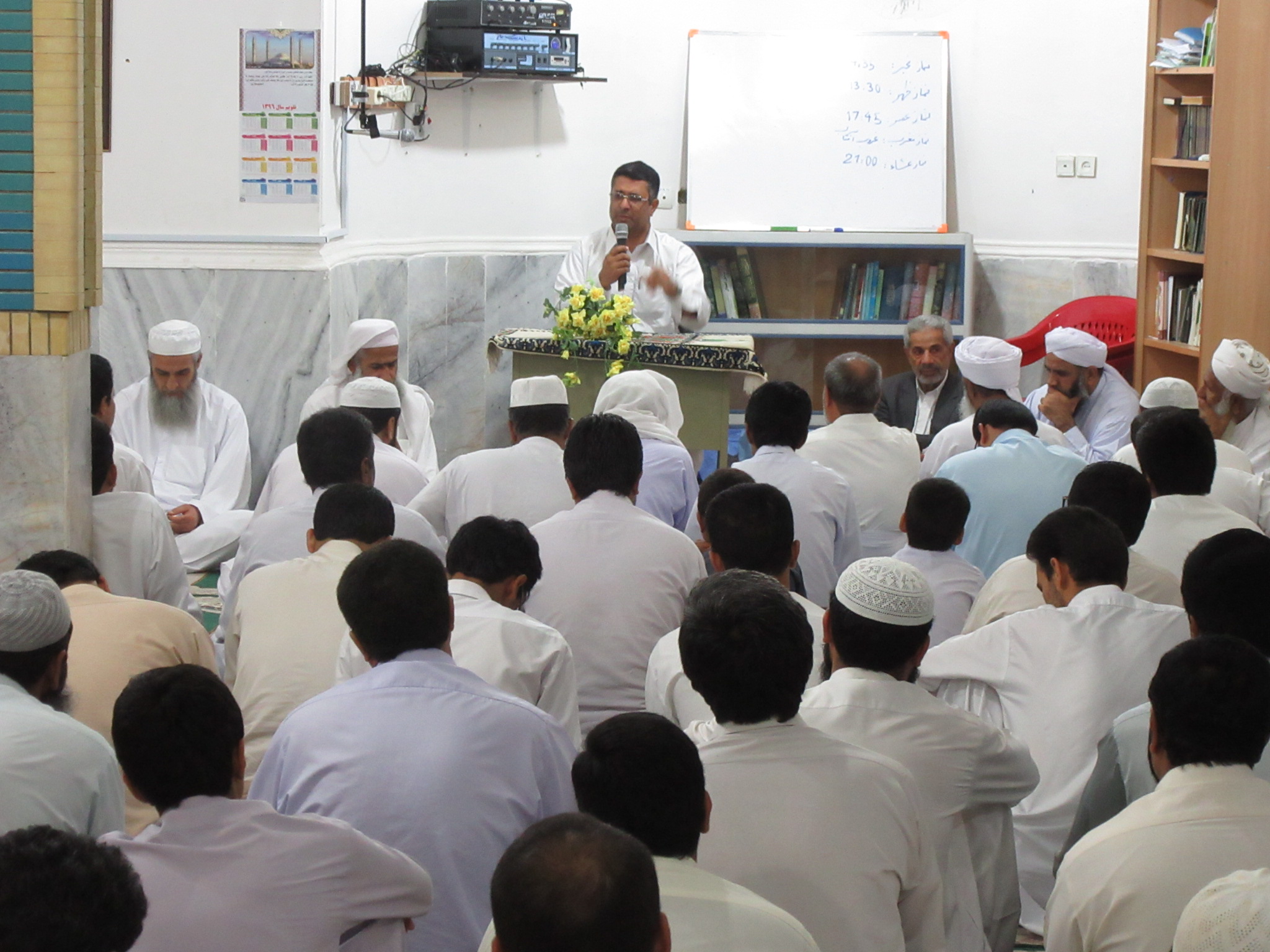 پس از اقامهی نماز مغرب، امیری، رئیس هیأت اجرایی جماعت شهرستان ایرانشهر، ضمن تقدیر و تشکّر از پذیرفتن دعوت و شرکت در ضیافت، حادثهی تروریستی هفدهم خرداد را از سوی جماعت شدیداً محکوم کرد.