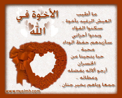 و بدون شک کسانی که عقد اخوت را در راه خدا بسته‌اند دیدید که نشانه‌ای از نور ایمان بر چهره‌شان نقش بسته است و گناهانشان (به جز کبایر و حق الناس) مانند برگ‌های خزان متلاشی می‌گردد و خداوند متعال روزی که هیچ سایه‌ای به جز سایه‌ی (رحمت و عرش) او نیست آنان را در سایه‌ی عرش خود جای می‌دهد و آنان را زیر بار مهر و محبت خود می‌گیرد و به بهشت برین خود وارد می‌کند، و آنان از ته دل احساس به شیرینی ایمان و اسلام می‌کنند.