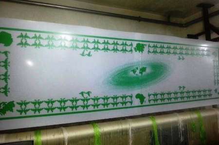مدیریت شرکت مهر بافان اضافه کرد: در بافت این فرش که تنها از دو رنگ سفید و سبز زیتونی استفاده شده است، کلمه صلح با ۱۰۵ زبان دنیا نوشته شده است.