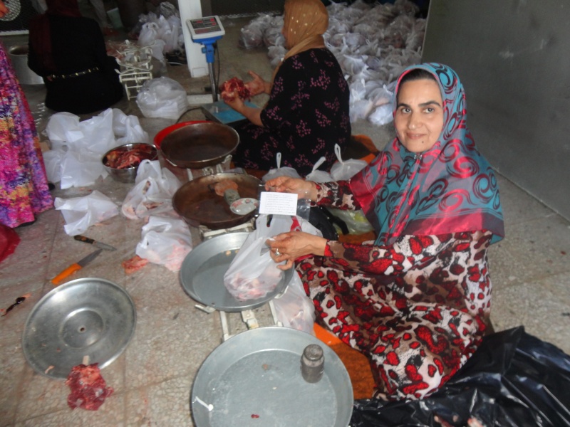 هیئت خیریهی «احسان» متشکل از اعضای جماعت دعوت و اصلاح و خیرین شهرستان، ۱۱ رأس گاو و ۳ رأس گوسفند را با حضور نزدیک به ۷۰ نفر نیروی کار قربانی کرد. سهمهای قربانی در بین اعضای جماعت و فقرا تقسیم گردید. برگههایی کوچک برای معرفی این هیئت خیریه و اقدامات آن و دعوت به همکاری آتی و معرفی فقرای بیشتر، داخل سهمهای قربانی قرار داده بودند. قربانی در یک باغ، نرسیده به کشت و صنعت مهاباد انجام شد که از ۹ صبح تا ۱۱ شب طول کشید. لازم به ذکر است که هرساله در عید قربان، این هیئت خیریه این سنت حسنه را انجام داده است.