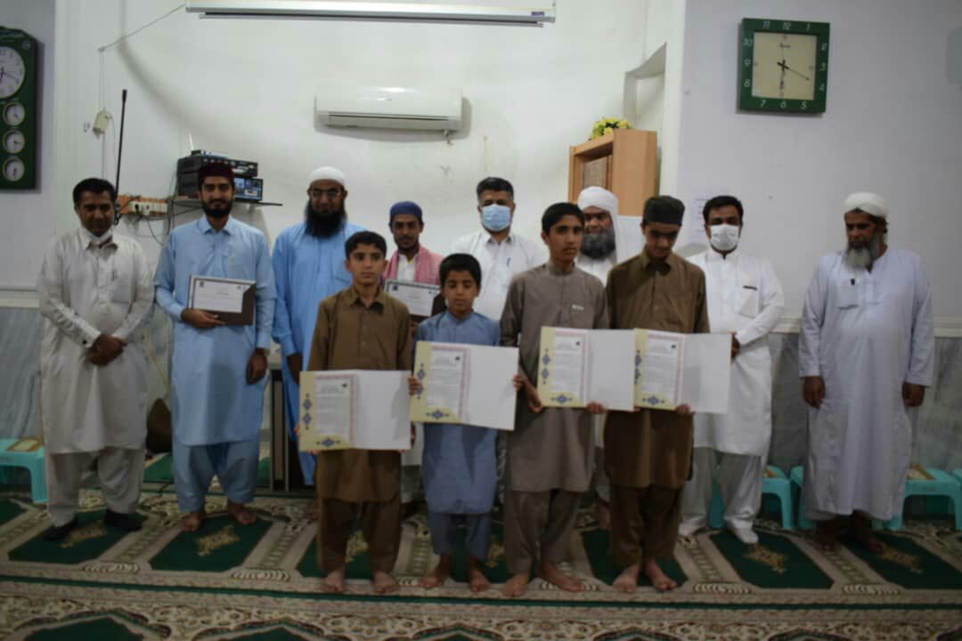 در پایان نشست، از سوی کانون سلمان فارسی گواهینامهی حفظ کل قرآن مجید به حافظ عبدالله رسولیزاده و حافظ محمد کوچوکی و گواهینامهی حفظ جزء سیام قرآن مجید به قرآنآموزان این مکتب اهدا شد.