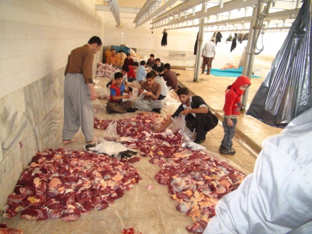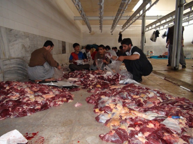 در این بین جمعی از خیرین و اعضای جماعت همانند سالهای گذشته جهت پررونقتر کردن انجام سنت حسنهی قربانی و کمک به خانوادها در خرید، ذبح و توزیع گوشت قربانی بین شهروندان به خصوص نیازمندان از یک هفته قبل از عید نسبت به جمعآوری پول سهم قربانی شهروندان و خرید احشام اقدام و در روز عیدقربان آنها را در کشتارگاه شهر ذبح و سپس گوشتهای قربانی را بین شهروندان تقسیم کردند.