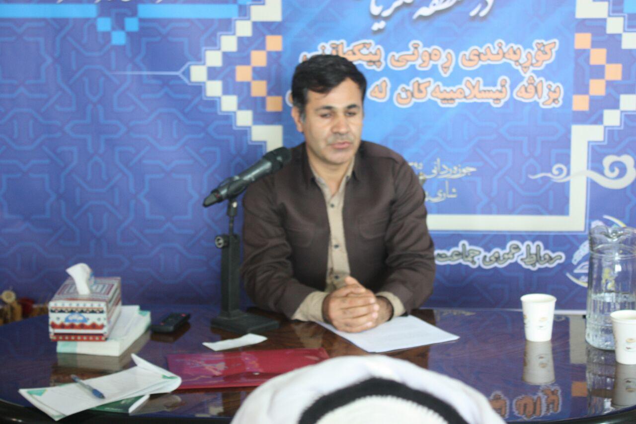 در این همایش که با حضور جمال اسماعیلی، «مسئول روابط عمومی جماعت» و عبدالکریم عزیززاده، «مسئول هیئت اجرایی استان» و جمعی از پیشکسوتان و سابقین جماعت دعوت و اصلاح از دو استان آذربایجانغربی و کردستان برگزار شد، رحمان احمدی ادیب و دانشآموختهی حجرههای سنّتی علوم دینی در سخنانی با نقبی به تاریخ معاصر کُرد، کارکرد حجرههایی علوم دینی، مساجد و خانقاههای موجود در کردستان را در شکلگیری نوعی میهندوستی و اندیشهی دینی مورد مرور و واکاوی قرار داد. مهندس صلاحالدّین عباسی نویسنده، محقّق تاریخ و از پیشکسوتان جماعت دعوت و اصلاح در ایران، درباب تاریخ منطقه و افکار بومی- اسلامی و نحوهی استقبال مردم منطقهی مکریان و تعامل آنان با افکار نوظهور، سخنرانی کرد.