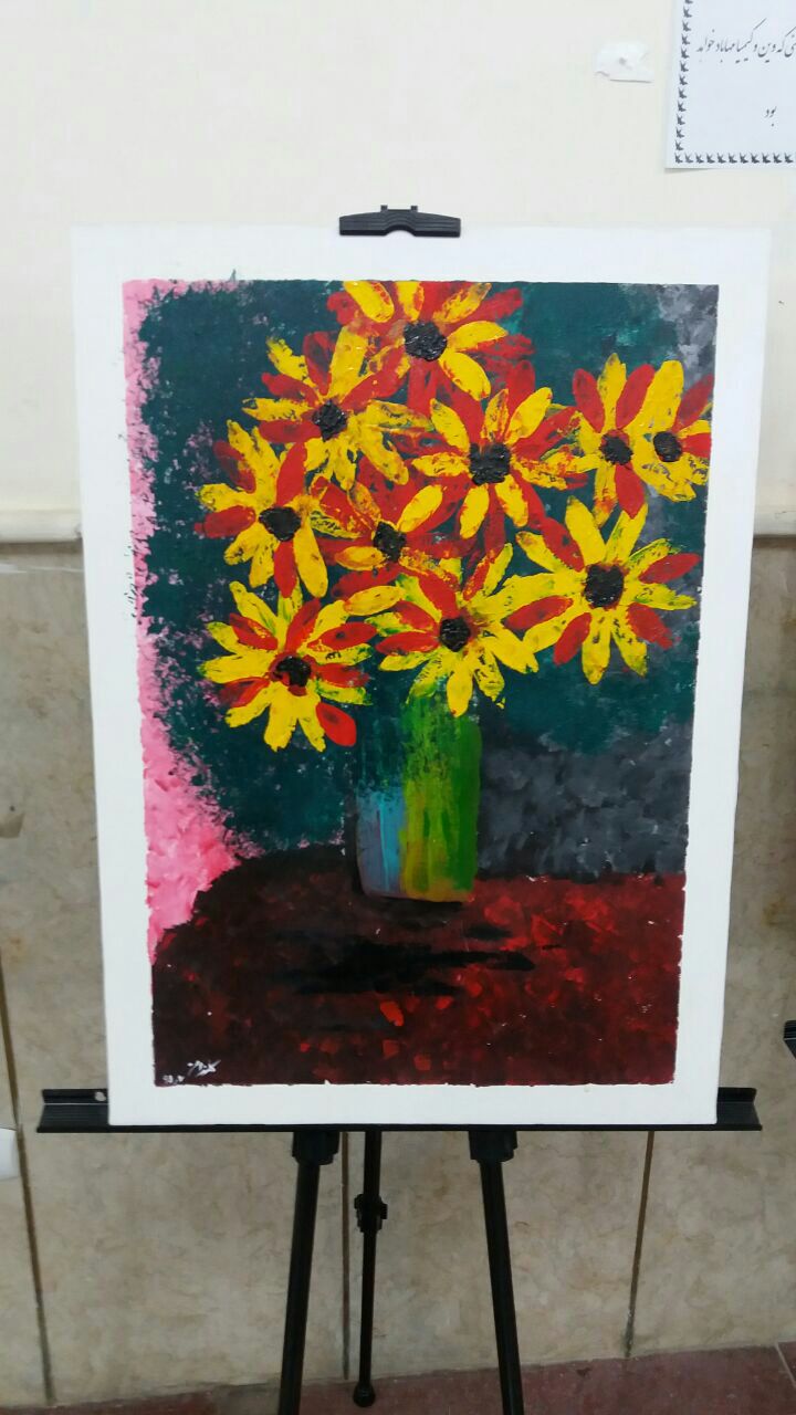ج: چهارساله متوجه استعداد زیادش در نقاشی شدم و از همون موقع یک مربی دارد که به او آموزش میده. در مورد بخش دوم سوالتون عرض كنم كه بله؛ دو ماه پیش در تالار وحدت برای تابلوهایش نمایشگاهی برگزار شد که مردم خیلی استقبال کردند و بیشتر آثارش فروخته شد.
