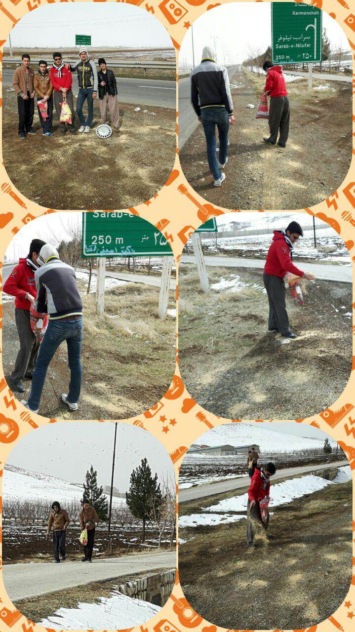 تعدادی از جوانان گروه شباب المسجد کرمانشاه در اقدامی زیست‌محیطی، روز پنجشنبه ١٤ بهمن‌ماه جاری، صد کیلو دانه را برای تغذیه‌ی پرندگان در مکان‌های مختلف اطراف شهر پخش کردند.