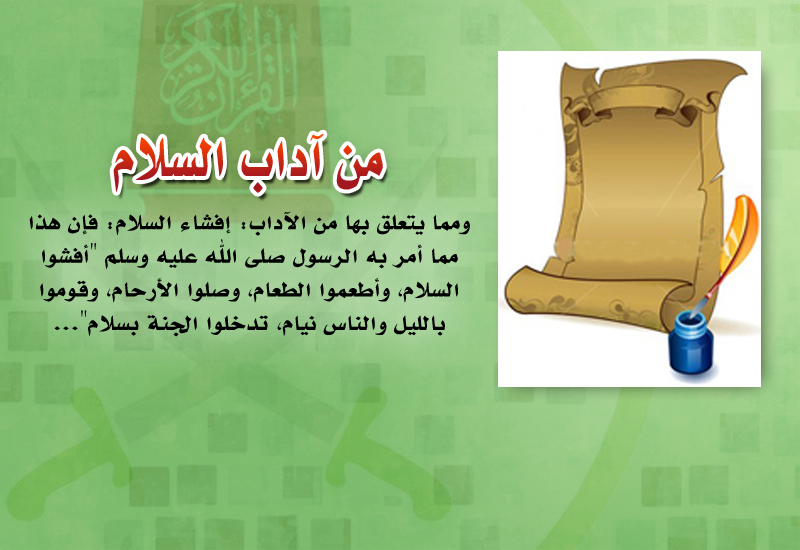«تُطعِمُ الطَّعَامَ وَتَقرَأ السَّلامَ عَلَى مَنْ عَرَفتَ ومَنْ لَم تَعرِفْ».