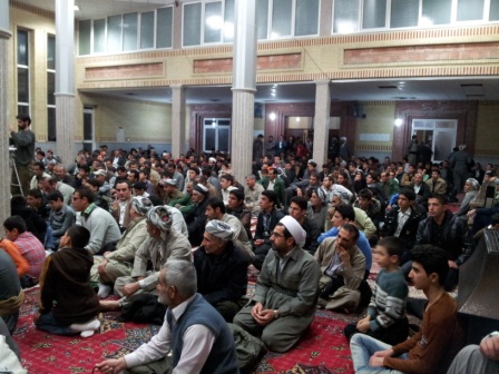 در این مراسم ملا عبدالکریم آذرین با تأکید بر شیوه‌ی زیست پیامبر (ص) و چگونگی دوستی و محبت رسول گرامی گفت: دوست داشتن پیامبر (ص) را از اصحاب او یاد بگیریم. سپس به همراهی ابوبکر (رض) در سفر هجرت پیامبر (ص) اشاره کرد و افزود: دوستی پیامبر (ص) فقط با ادعا نیست، بلکه باید عملاً آن را ثابت کنیم و آن هم با حفظ سنت پیامبر (ص) و شناخت سیره و چگونگی زندگی ایشان می‌سر می‌شود.