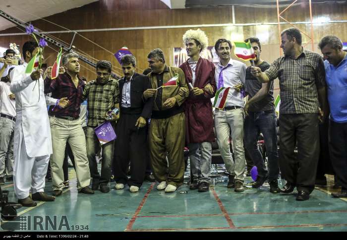 در این مراسم اسحاق جهانگیری، معاون اول رییسجمهوری در حمایت از دکتر روحانی گفت: با برجام راه تعامل ایران با کشورهای دیگر را هموار کردیم. وی تأکید کرد که باید زبانهای مختلف در مناطق مختلف تدریس شود و اقوام ایرانی افتخار ایرانی و مناطق امن ایرانی هستند. هیچ قوم ایرانی بر دیگری برتری ندارد.