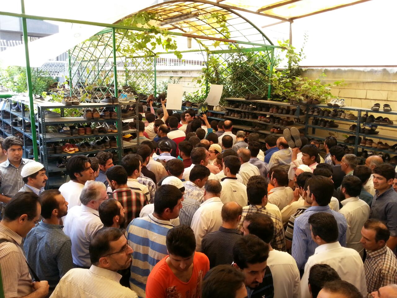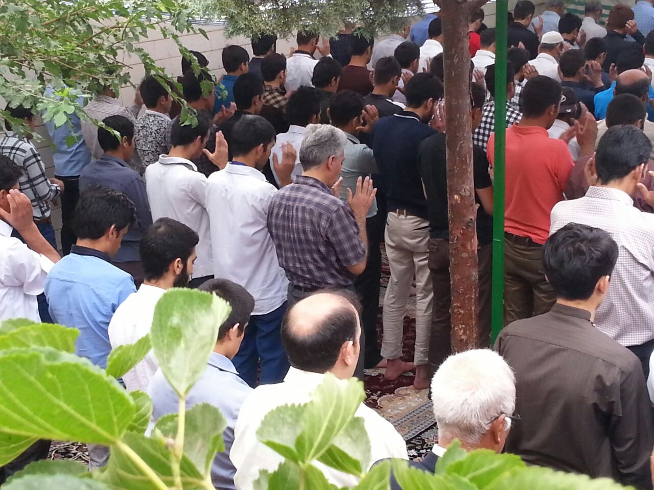 بامداد روز چهارشنبه شانزدهم تیرماه، درهای مسجد به روی جمعیت مشتاق گشوده و مراسم ویژه عید فطر، پس از اقامه نماز جماعت صبح با تلاوت قرآن و تکبیرات عید آغاز شد. با وجود اینکه مطابق جدول اعلام شده، اقامه نماز عید در ساعت هشت صبح گنجانده شده بود، اما به دلیل استقبال گسترده نمازگزاران، پیش از ساعت هفت بامداد، کلیه فضاهای مسجد شامل بالکنها، پشت بام، حیات و راهروها مملو از جمعیت گردید و هیأت امنای مسجد ناگزیز به تغییر برنامه و برگزاری نماز عید شدند. در اثنای اقامه نماز و به دنبال آن ارائه خطبهها که توسط استاد عزیز بابایی ایراد شد، جمعیت همچنان به صورت پرشمار به سوی مسجد میشتافتند به نحوی که پس از پایان خطبهها و خروج فوج اول نمازگزاران، در خلال دقایق کوتاهی تمامی فضاهای مسجد مجدداً لبریز از حضور نمازگزاران شد و نماز و خطبههای عید قبل از ساعت هشت بامداد مجدداً اقامه و ایراد شد.