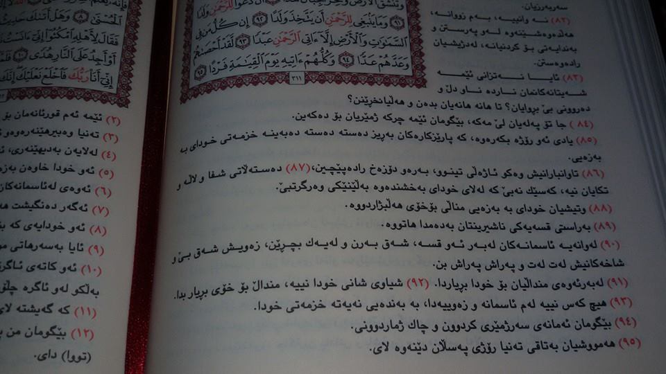 - قابل ذکر است به نظر اینجانب ترجمهی استاد عبدالرحمن شرفکندی (ههژار) میان ترجمههای دیگر زبان کردی از نظر ادبیات و غنای لغوی و سبک، عالی بوده و جایگای بسی بلند را برای خود احراز نموده است، الحق و الإنصاف در این راستا حق مطلب را ادا نموده، و به کالبد ادبیات کردی جان تازهای دمیده است.