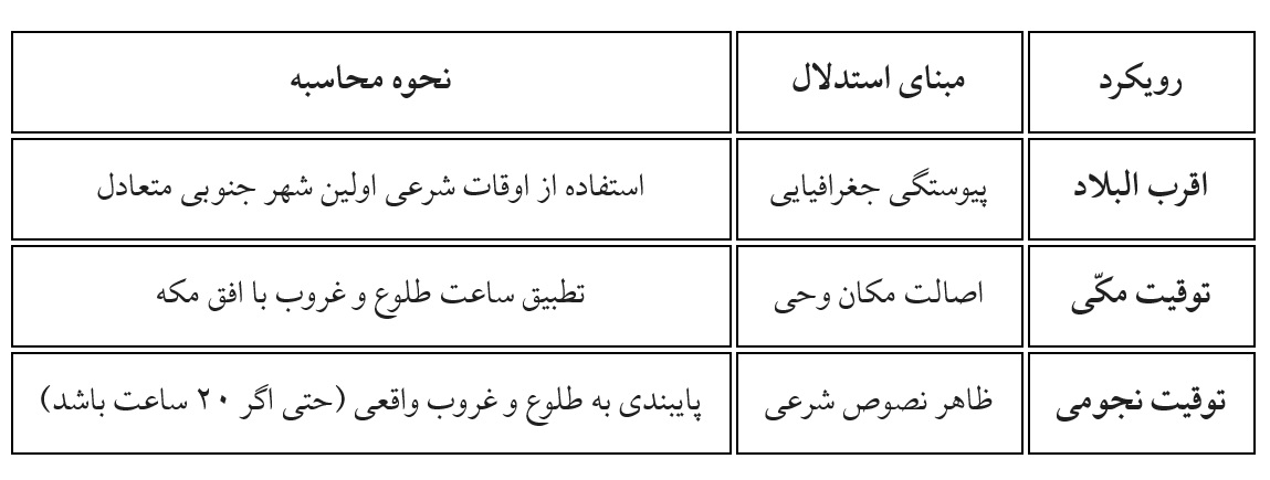 جدول مقایسهای مبانی فقهی در مناطق خاص