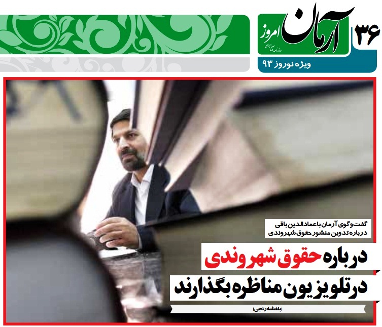 • اشاره‌: توجه به حقوق شهروندی یکی از مسائلی بود که دکتر حسن روحانی زمان مبارزات انتخاباتی خود آن را مورد تأکید قرار داد. همچنین تدوین منشور حقوق شهروندی نیز یکی از وعده‌های انتخاباتی او بود. آذر سال جاری همزمان با گزارش صد روزه دولت تدبیر و امید ویرایش نخست منشور حقوق شهروندی منتشر شد. تاکنون اظهارنظر‌ها و نقد و تحلیل‌های زیادی پیرامون منشور حقوق شهروندی ابراز شده است.