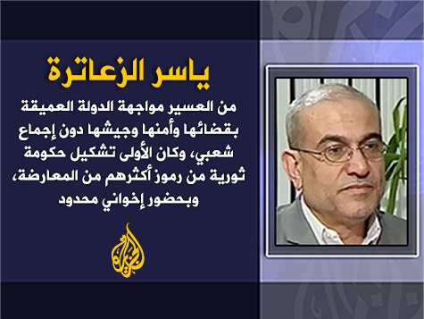 رویارویی با دولتی عمیق با سیستم قضایی و نیروهای امنیتی و ارتش، بدون اجماع و تأیید مردمی دشوار است و بهتر آن بود که دولتی انقلابی با اکثریت معارض و حضور کمرنگ اخوان تشکیل شود.