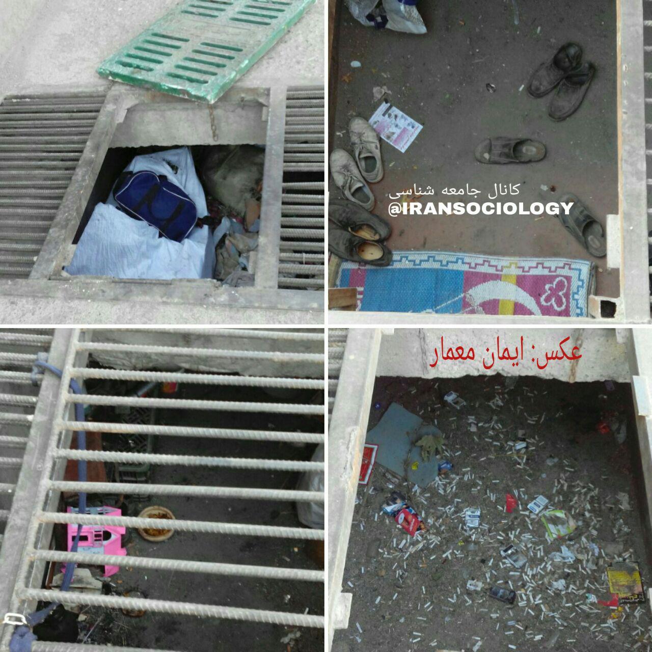 اگر صبح زود از بزرگراههایی چون نيايش و چمران گذر کنیم، با بیرون آمدن آدمهایی از دریچههای کانالهای آب گوشهی بزرگراه مواجه میشویم که با کلی تقلّا بدنهای نحیف و نزارشان را از آنها عبور داده و پا بر روی شهر میگذارند.