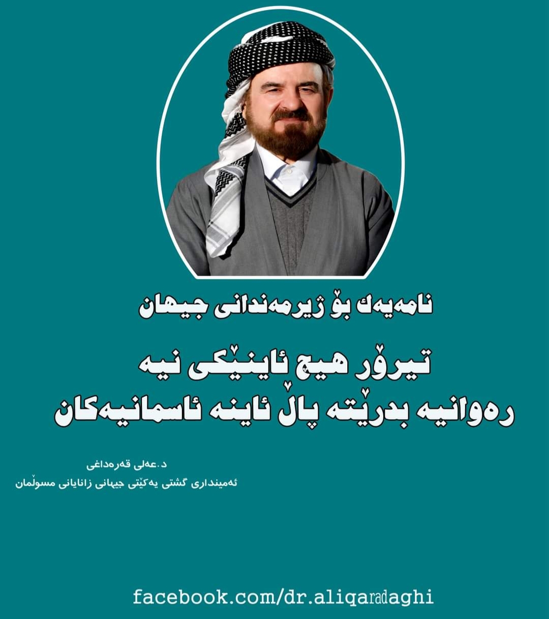 بسم الله الرحمن الرحیم «تَعالَوْا إلى كَلِمةٍٍ سَواءٍ بَينَنَا وَبَينَكُم» (ئالی عیمڕان/٦٤)، وەرن بەدەم پرەنسیپە مرۆیی و ڕەوشتییە هاوبەشەكانەوە، وەرن بۆ گفتوگۆ و ڕەتكردنەوەی دەمارگیریی و ڕقلێبوونەوە و سوكایەتیكردن بە هەر كەسێكی تر.