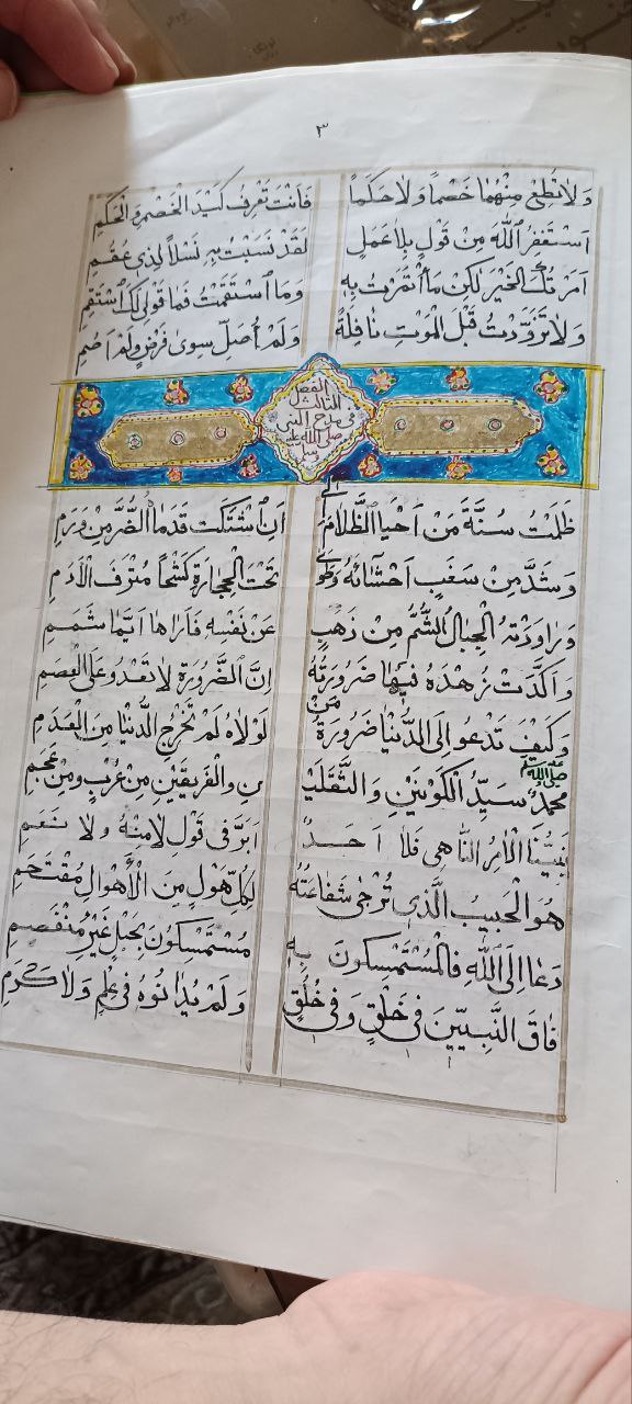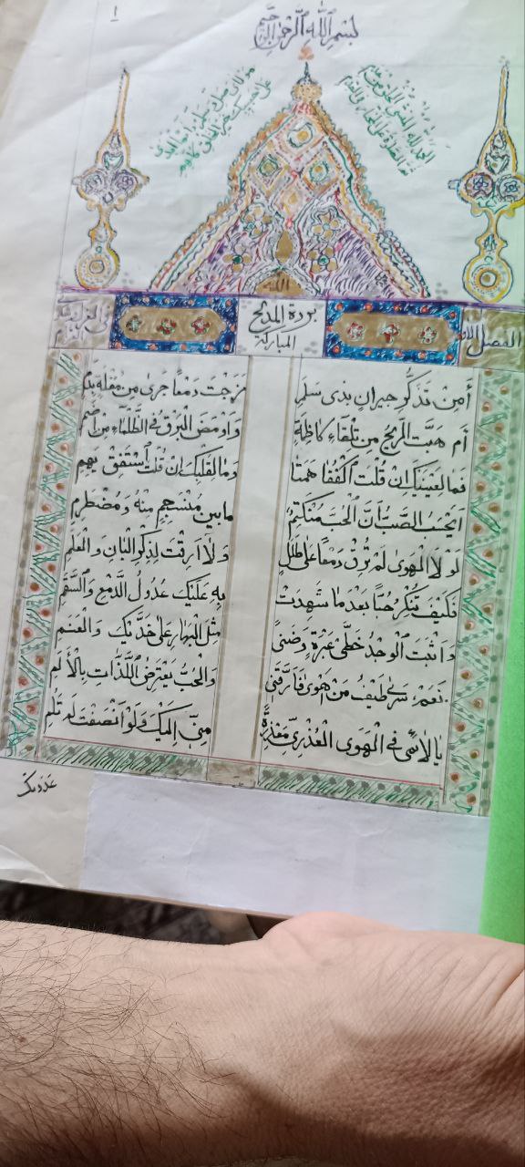 دەنگی خۆش: بەڕێکی لە “قەسیدەی بوردیە” کە هەر خۆی بە خەتی نەسخ نوسیویەتییەوە، بۆ خوێندینەوە و قوڕئان بە دەنگیێکی خۆش دەخوێنێتەوە.